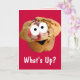 Muffin What's Up Anytime Card is a card you can send any time to let someone know you're think of them. It features a smiling muffin asking "What's Up" and inside says "Muffin much here."
