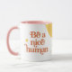 This ceramic mug features a 70's retro theme with the quote 'be a nice human'. All colors are editable so feel free to create your own unique look!