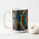 This beautiful ceramic mug features a stunning mosaic-inspired design with intricate patterns of vibrant blues, warm oranges, and delicate beige accents. The captivating abstract artwork wraps gracefully around the mug, adding a touch of artistic elegance to your everyday routine. Perfectly sized for your favorite coffee, tea, or hot beverage, this mug combines practical functionality with decorative charm, making it an ideal gift or a delightful addition to any home or office décor. Bring a splash of creativity to your daily sips!