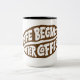 Perfect size for my morning coffee! 8 oz is definitely not enough to get me going. This 15oz mug is perfect! The handle allows a good grip.... it's the little things ;). Great quality! Black print matches the inside of the mug which adds a nice contrast to the design.