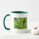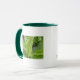 A larger 15-ounce size ceramic mug with white and green "ringer" style coloring.