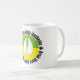 Nice mug for babalawos with cowrie in green and yellow cricle. Text around is Orula iboru iboya ibosheshe.