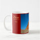 A colorful souvenir mug showing a tenacious 6-foot Ponderosa Pine which is the most-photographed tree in Zion National Park. The early morning light provides a dramatic showcase for this amazing tree, imbuing the the sandstone rock with a deep orange color that stands out dramatically against the deep blue of the cloudless sky. You can find this remarkable pine in the upper east "slick-rock" area of the park. Ponderosa pines (pinus ponderosa) can attain a height of 164-feet (50 meters) in the American desert southwest. It is doubtful that this particular tree will ever grow taller than its current height.