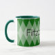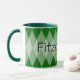Argyle pattern in greens. Background color of dark green is toned down 10 and 20 percent to create a repeated diamond pattern in three shades. Name appears in black fonts at center. (Customize/Edit background color to change).