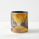 Mug, drawing Golden Autumn in the park. Depicts a park, benches, leaves and trees. There is a pedestrian path in the middle.