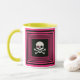 This mug features a stylized skull with cross bones, placed in the center of nested geometric frames, on a sober background. The design blends minimalism and graphic structure for a modern and assertive aesthetic. Perfect to add a rebellious and original touch to your coffee breaks. Ideal for lovers of alternative art, bold style or contemporary decor. A mug that doesn't go unnoticed.