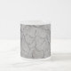 White mug with a photograph of a dry cracked gray soil clay from a river bed. Small fossils can be seen. (Frosted glass finish)