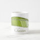 Feather in shades of green. Beneath is name to be personalized, in dark green script.