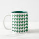 Green diamond shapes with 3D look. Net of diamonds covers the mug. Multiple shapes are placed with top and bottom points touching, as well as right and left side points.