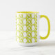 Yellow rings, with three dimensional look, are interlock to form a vertical pattern.
