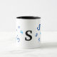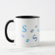 Blue Letters. Personalize with your choice of single letter (or number). Chosen letter will appear as a large central letter in black, surrounded by four slightly smaller letters, and ten even smaller letters (in shades blue) that are jumbled around the central letter.