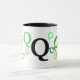 Many letters. Personalize with your choice of single letter (or number). Chosen letter will appear as a large central letter in black, surrounded by four slightly smaller letters, and ten even smaller letters are jumbled around the central letter and show in various shades of green.