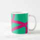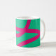 Modern mug featuring bright pink curved lines on a deep green background. Vibrant and unique, perfect for creative spirits who love color and originality.