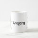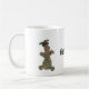 Dragon doll on each side of the mug. Dragon is created from yarn in shades of beige and green. Wearing glasses, doll seems to be a professor giving a lecture. Dragon on each side of mug with personalized name in center.