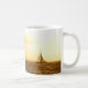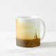 A classic beverage mug showing a hi-key image of a catamaran sailing on the golden shimmering ocean waters at sunset. The left side of the image contains dark clouds and the island of Lanai and the right portion shows the sun shining down brightly on the vessel. Taken in the town of Lahaina, on the island of Maui in Hawaii.