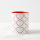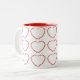 Red beaded necklace: red glass beads with white flowers. Strand of necklace is formed into heart shape. Image on each side of mug. Image is multiplied around mugs in three rows.