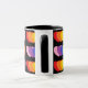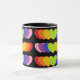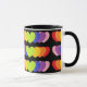 Warm their heart and tummy with this super cute Valentine's Day themed coffee mug! Lovely mug with art by Buttercup's Clothing and Collectables features a repeating pattern of rainbow color hearts against a black background. Happy Valentine's Day and bottom's up!