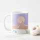 This classic white mug is designed with a full moon peeking out from behind a mountain surrounded by snow.