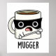 Mugger Funny Mug Puns features a cute mug wearing a mask and holding a stirrer ! Perfect Puns gift for family and friends who love cute mug puns.