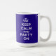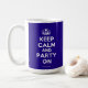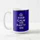 Based on the original Keep Calm and ... poster this cream and blue Keep Calm and Party On Mug features a custom designed font that matches the original closely.