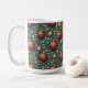 This is a Christmas mug. It has a sophisticated design with a harmonious combination of red and green. Have a happy Christmas.