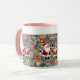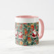 This is a Christmas mug. It has a sophisticated design with a harmonious combination of red and green. Have a happy Christmas.