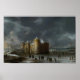 Thick snow blankets the grounds around the Castle of Muiden, its towers and walls rising above a frozen canal where figures skate beneath a pale winter sky. Bare trees line the moat, and smoke curls from chimneys, hinting at warmth within. The scene captures the charm of a Dutch winter—cold, quiet, and full of life.