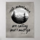 Muir quote poster the mountains are calling black and white original photography and text on distressed gray wall art for decor in home or office. Photography copyright Ann Powell.