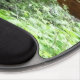The plastic backing is nice and sturdy. The grippy pads underneath keep the mouse pad where I put it on my table. The pad the mouse sits on is cut well to fit the backing. The wrist pad is perfectly soft, supportive, and thick. I'm left-handed, and this mouse pad works just as well for me as it does for my right-handed friends. I'm the designer of HippieClecticHope products. I'm blown away by how well my intricate fractals turn out on the tangible items in the Zazzle Marketplace. This particular mouse pad ***appears*** like a 3D object... A mathematically-engineered rainbow black opal, inlaid under transparent fabric...