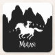 Mulan Riding Black Wind Past Mountains Silhouette Square Paper Coaster