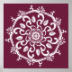This white mandala sits on a dark red-violet background. The color is deep and sophisticated. Part of the Payon Mandala Collection.