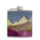 An abstract landscape with unique colors and textures showing a mountain scene in shades of purple, tan, beige, and brown.