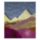 An abstract landscape with unique colors and textures showing a mountain scene in shades of purple, tan, beige, and brown.