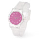 This mulberry-faced watch with a pink band practically yells, "stylish!" You will love the attractiveness of the boldly-colored timepiece. Customize to change the colors of the numbers (the default color is white), or remove them entirely (minutes are printed on the band on certain styles).