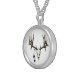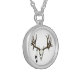 Mule deer skull eagle feather silver plated necklace