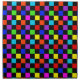 Bright colors and black checkerboard.