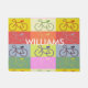 Welcome guests with a great looking personalized doormat with a fun, colorful bike theme. Silhouette of a bike against squares of Gray, Yellow, Green, and red. Eye-catching, modern and unique. Great gift idea for a cyclist or a cycling enthusiast. Personalize with a name and you have one very special door mat sure to greet everyone with a bit of cycling love. I have many items with this design, so please be sure to check them out in my cycling design store. If you have any questions or special requests, message me. Happy shopping, ya'll!