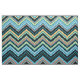 A mulit-color chevron pattern with irregular size zig-zag stripes, predominantly blue color.