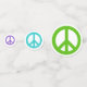 Peace signs in a rainbow of bright colors. Pink, orange, yellow, green, blue, and purple.