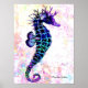 Multi color Seahorse colorful Poster and prints in a multitude of sizes. Artist signature on bottom right.