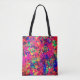 Beautiful multi-colored tote bag with bright colors of red, blue, purple and green.