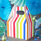 Multi Coloured Red Yellow pink orange Green blue candy Stripe lines on white background