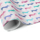 Dachshund pattern featuring multi-colored watercolor doxies with textured background.