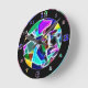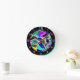 Multi-colored jewel tone shapes make up the background on this colorful wall clock. The numbers in the black outer edge are transparent so the jewel colors will show through.
