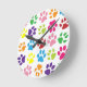 Multi-Colored Paw Prints Round Clock
