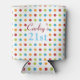 Multi-colored polka dot pattern on personalized can coolers. Personalize for Birthdays or any occasion.
