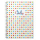 Multi-colored polka dot pattern on personalized spiral notebook. Personalized with initial and first name.
