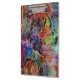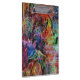 Vibrant colors and intricate patterns blend, creating an abstract scene filled with swirling shapes and floral motifs. The interplay of warm and cool tones, along with textured layers, adds depth and movement.