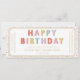 This birthday gift voucher design features a colorful dot design. The "happy birthday" heading is an image that cannot be edited. All of the other text is fully editable. For more advanced customization of this design, simply select the "Customize It" button above.