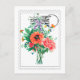 Vintage foxglove, clematis, pansy, peony, poppy, and yellow day lily flower bouquet.